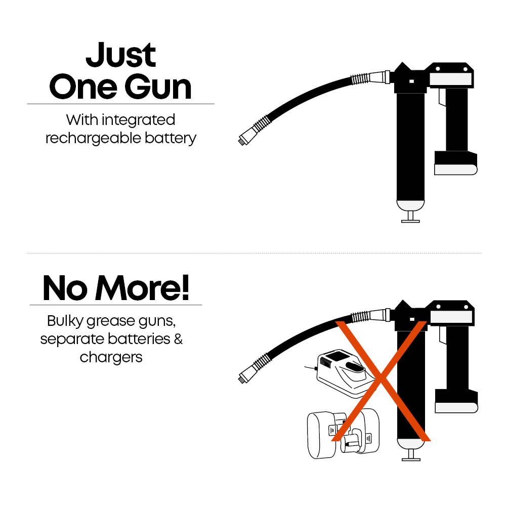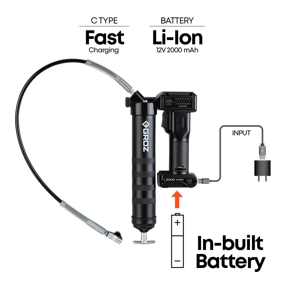 De Groz RGG oplaadbare vetspuit 12V is 's werelds eerste vetspuit met een ingebouwde batterij, een revolutionaire innovatie op het gebied van smering. Met een pompvermogen dat drie keer hoger ligt dan dat van handmatige vetspuiten, is dit gereedschap perfect voor garages, werkplaatsen en andere toepassingen waar precisiesmering vereist is.